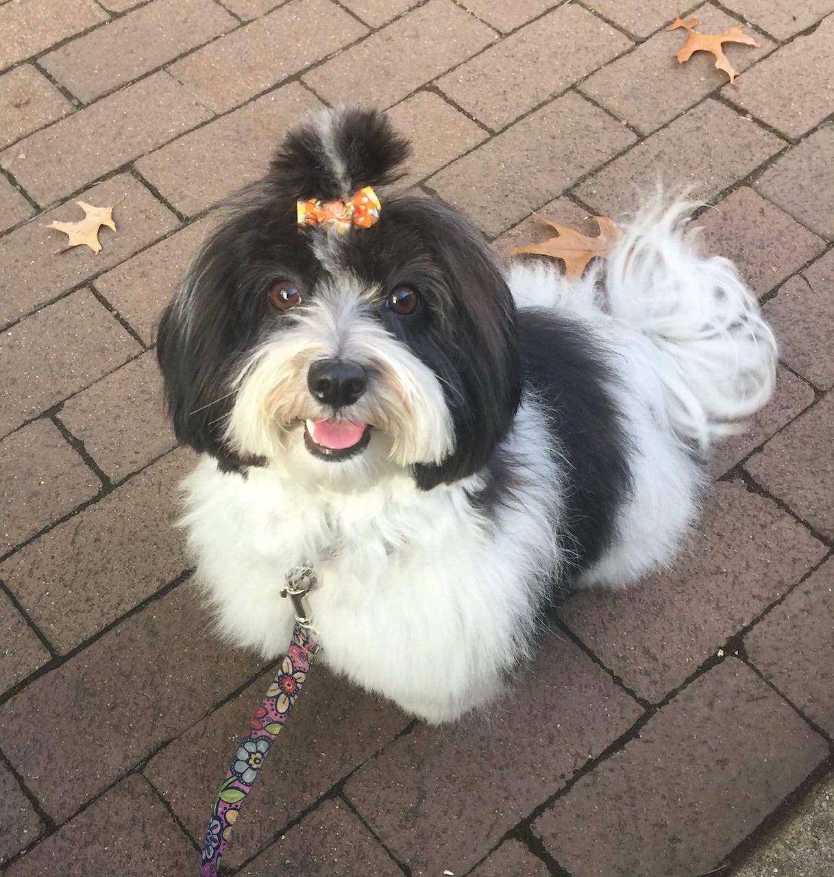 Daisy, Dale Ilsley Goldberg’s 5-year-old, 10-pound Havanese, waiting for Dale to throw her a ball.