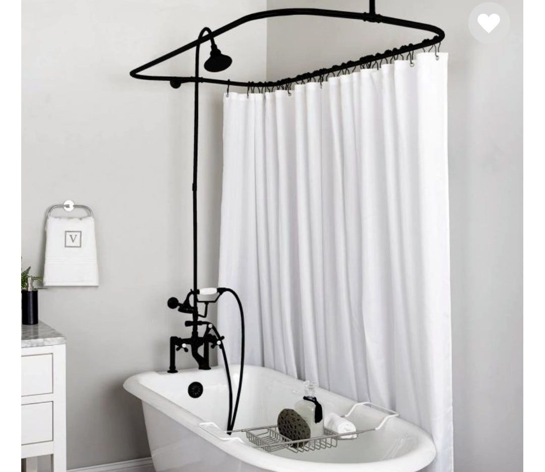 1967 - Daniel Silver - Banner Day Backstory - As I recall, our winning banner was painted on an old shower curtain liner that during our pre-suburbia days had hung in the bathroom of my family’s old Manhattan apartment (just a few blocks from the Polo Grounds: & despite its proximity to the Say Hey Kid, in those days not at all an upscale address), where the old-style tub had a wrap-around curtain rod that required an extra-wide curtain & liner, more or less like this: