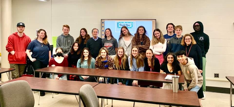 On April 20, 2023, Tom addressed a great group of students at Champlain Valley Union High School about his parents’ experiences surviving the Holocaust and his own experiences as the son of survivors. The students’ teacher, Amy Wardwell, first got Tom speaking to schools and other organizations, bringing him “out of his comfort zone.” His talk was recorded and can be heard in full via the following link, which can be shared with anyone and everyone to spread the word.
