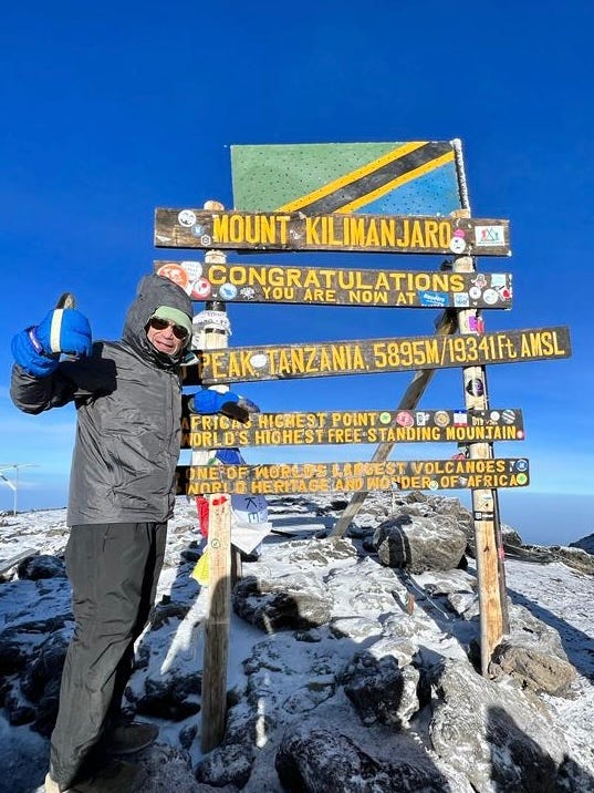 BTW, here is me summiting Kilimanjaro on Feb 12, 2023.”
